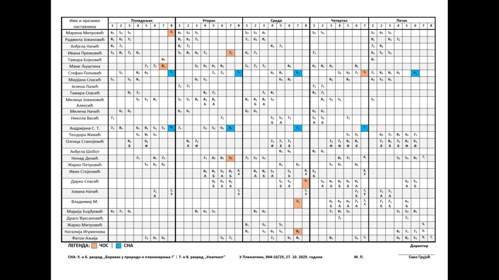 РАСПОРЕД ПИСМЕНИХ ЗАДАТАКА И ПИСАНИХ ПРОВЕРА ЗНАЊА ДУЖИХ ОД 15 МИНУТА