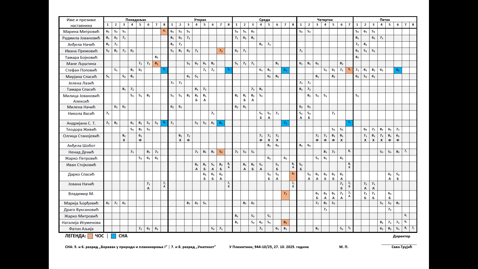 | 2.час | 830 | 910 |